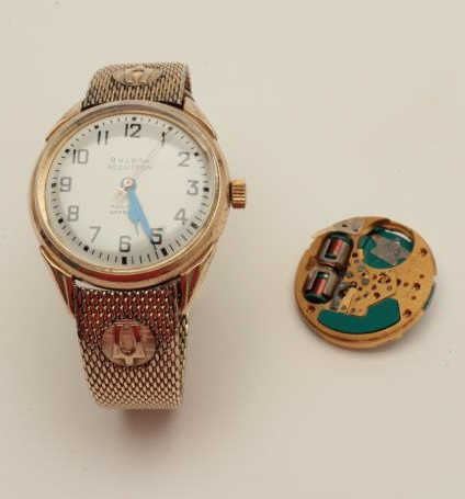 Lot 1831 Vintage Bulova Accutron wristwatch; railroad approved, quartz movement; tuning fork band; original