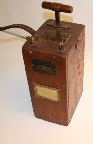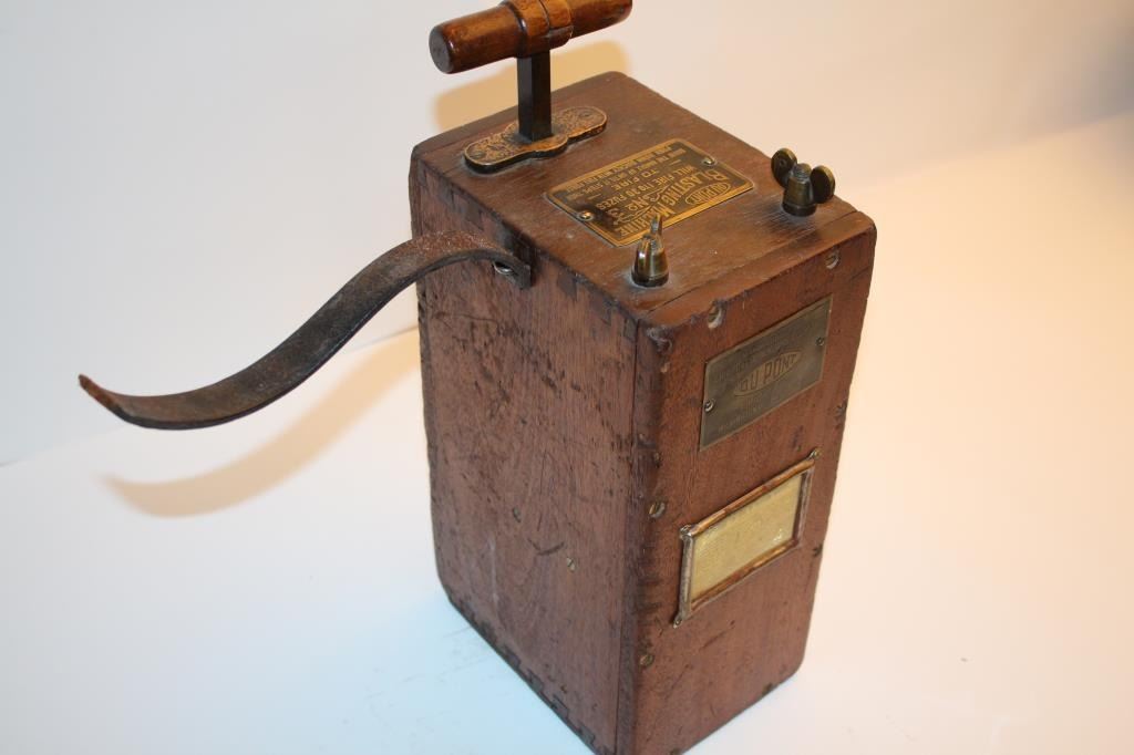 Lot 1841 DuPont wooden “Blasting Machine No. 3”, approximately 17” in height including charging handle, 6”