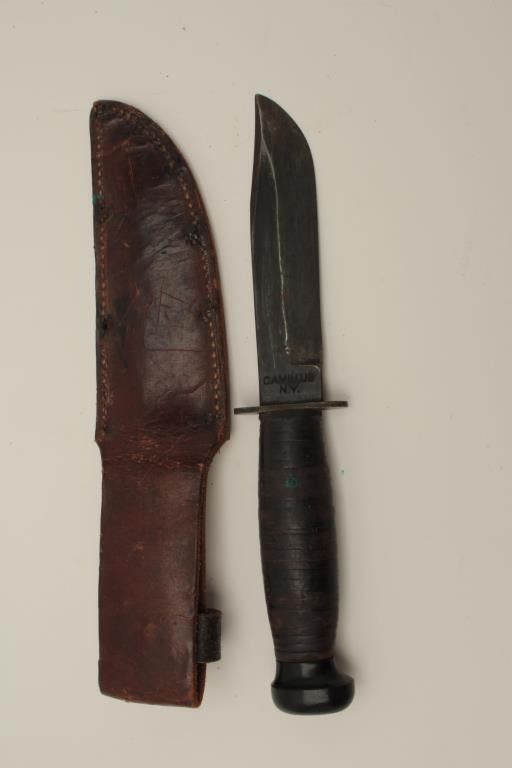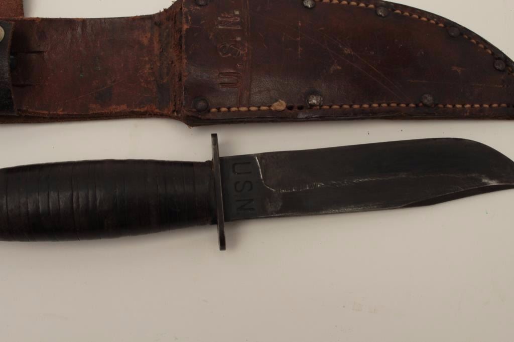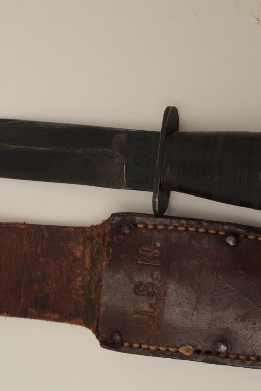 U.S.N. and Camillus marked issue knife with scabbard. Very good condition. Normal wear and use. Est.: $150-$300