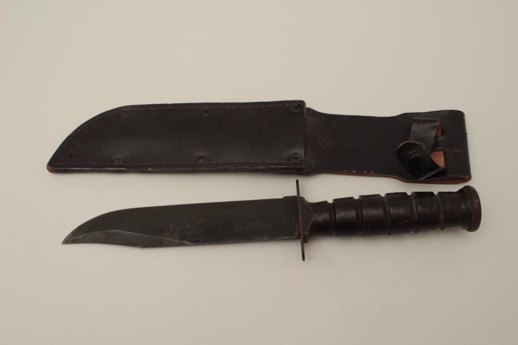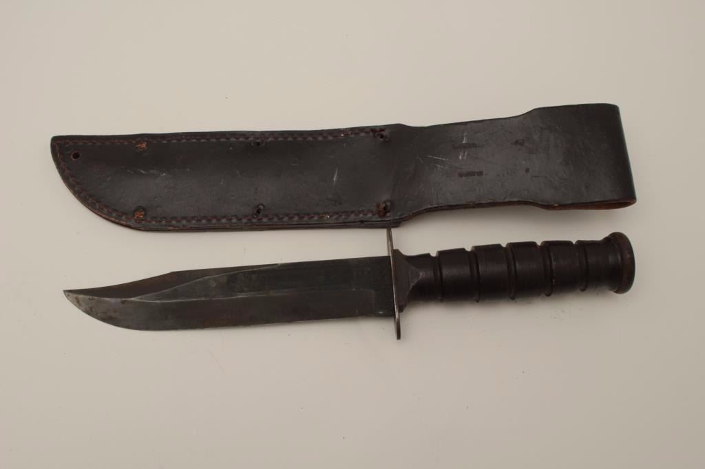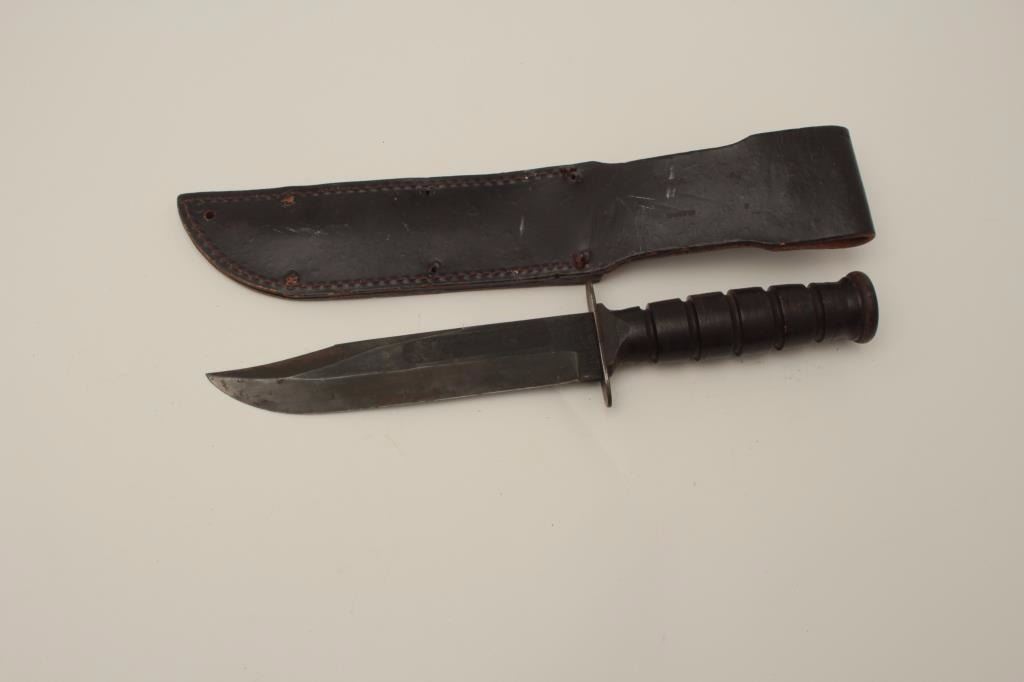 U.S. Military knife marked “Camillus, N.Y.” (Refer Cole Pg. 7 #13) showing slight sharpening. Very good plus condition. Est.: $100-$200
