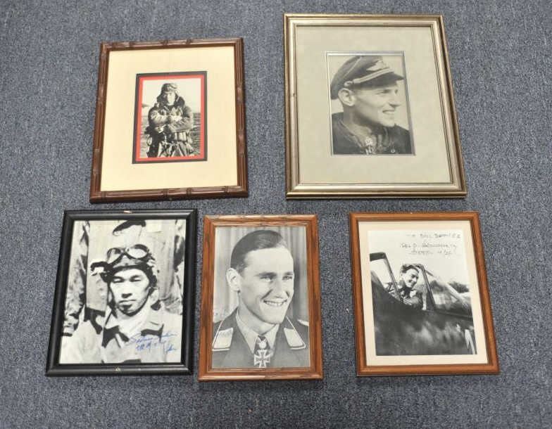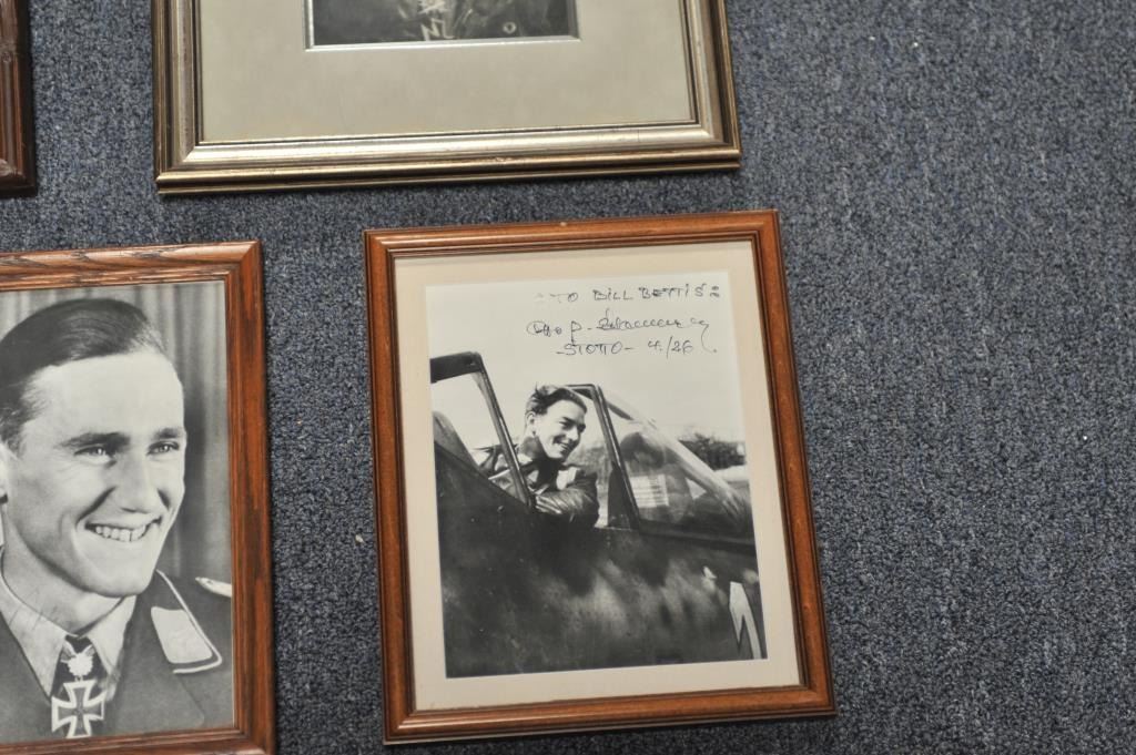 Lot of 10 framed and signed foreign military aviation photos including German, British and Japanese pilots; mostly WW II era. From the Bill Bettis Nieuport 17 Restaurant collection. Est.: $150-$300.
