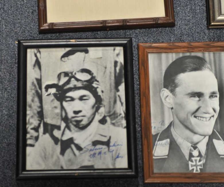 Lot 1866 Lot of 10 framed and signed foreign military aviation photos including German, British and Japanes
