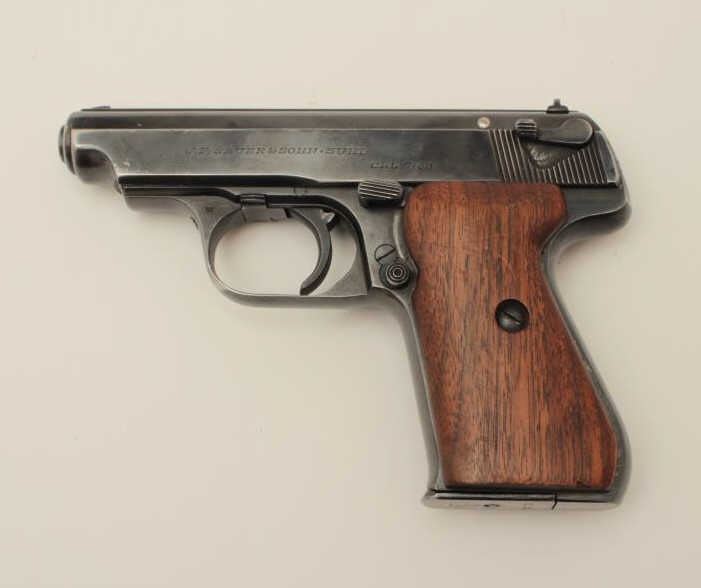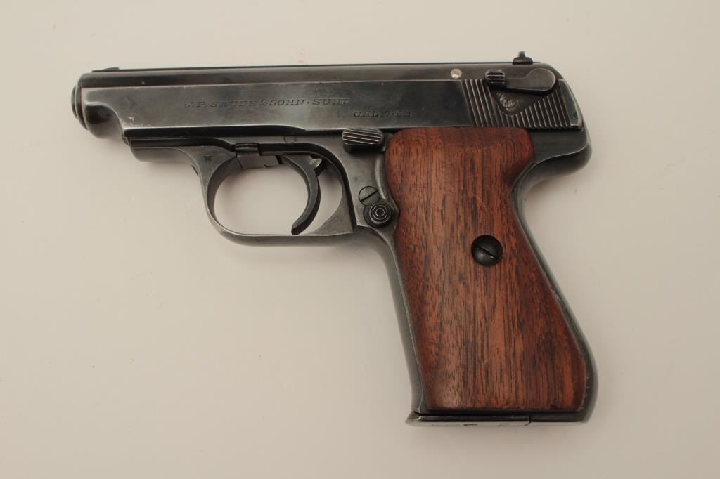 Lot 1888 J.P. Sauer Nazi marked Double Action .32 ACP caliber semi-auto pistol with holster, S/N 326905 sho