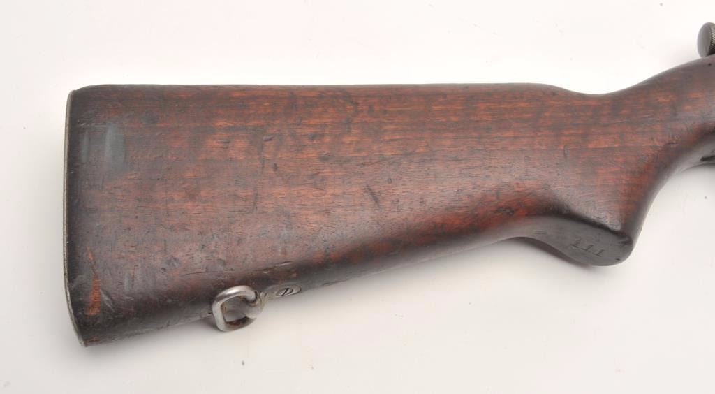 Springfield U.S. Model 1903 bolt action rifle, .30 caliber, serial #842619. The rifle is in good overall condition with a 24” barrel with a blade front and military tangent style rear sights. The barrel andreceiver retain the majority of their military finish with wear at the muzzle and old packing grease evident. The barrel is Springfield marked and dated 9-42 with the flaming bomb emblem. The rifle is marked,“111” at the pistol grip. The smooth wood stock is dark with mars and compressions consistent with service use. The stock includes sling swivels and ends with a smooth metal butt plate with trap. The bore isfair, the action is crisp and markings are sharp. The lot includes the CMP certificate of authenticity provided at purchase. (C+R) Est.: $250-$500.