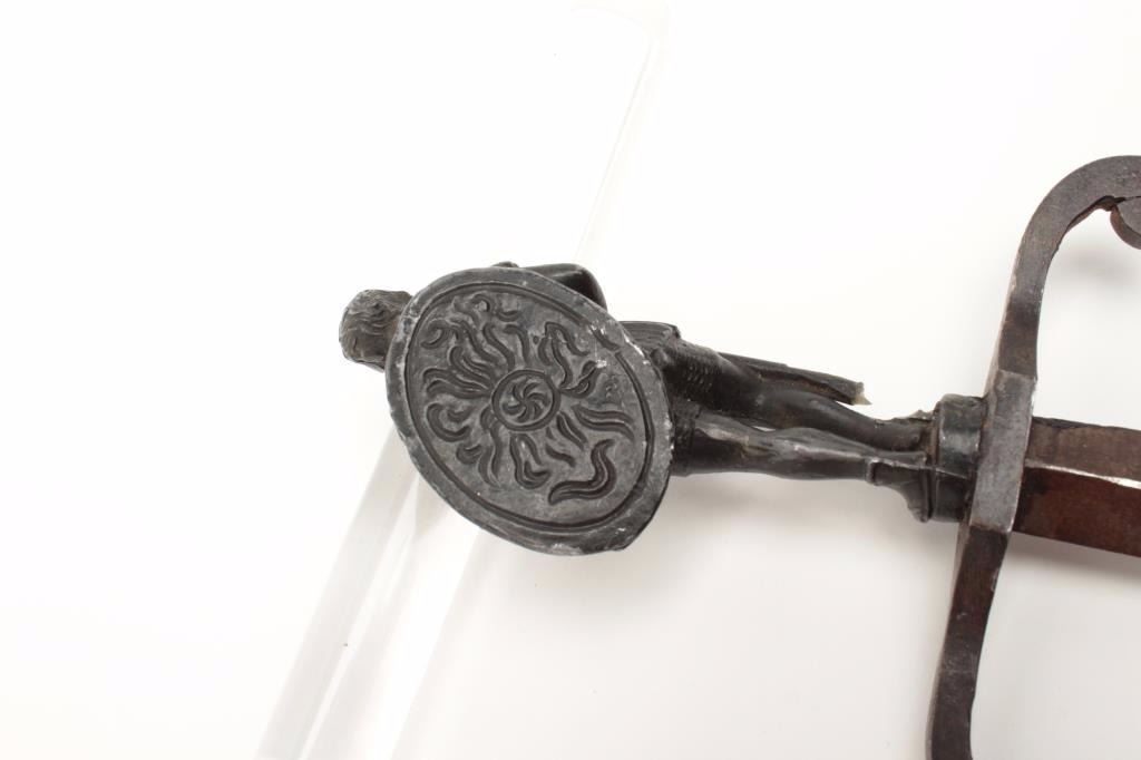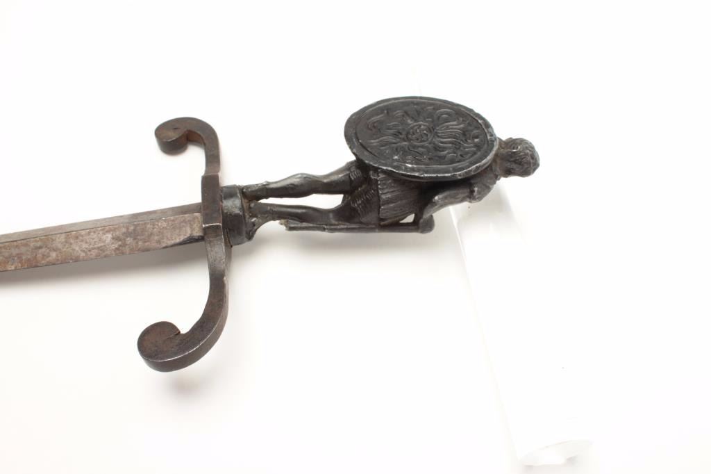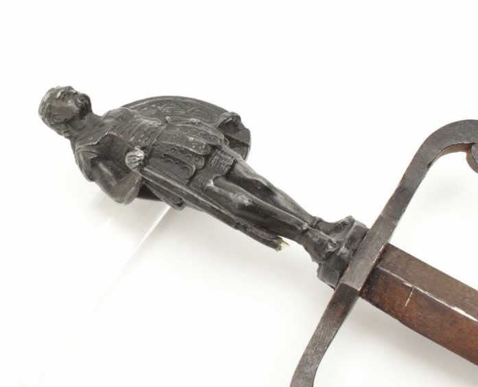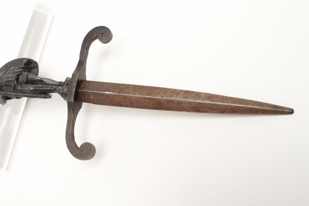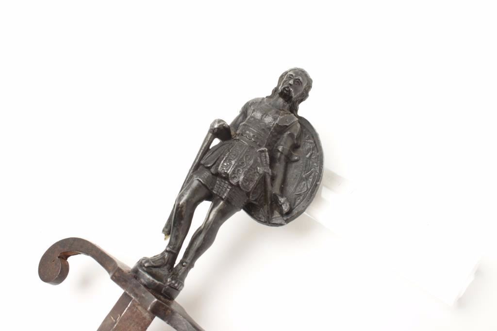 Lot 1924 Victorian era dagger with cast bronze grip of Celtic warrior. Approximately 10” overall with a 6”