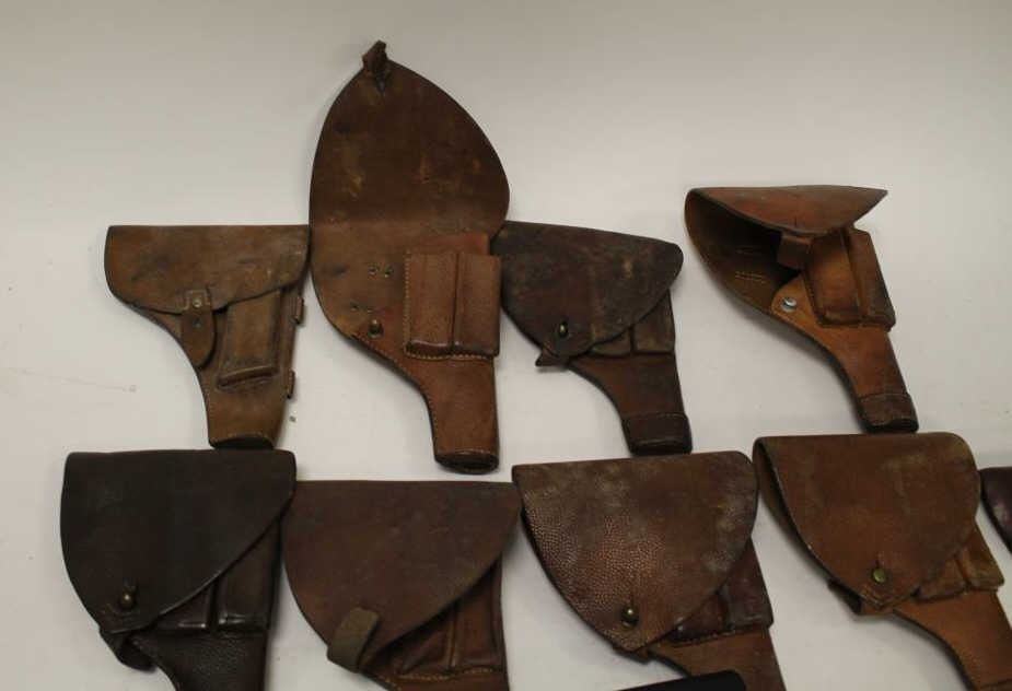 Lot 1947 Large lot of military holsters; European, U.S.; WW II to 1950’s. Est.: $150-$300.