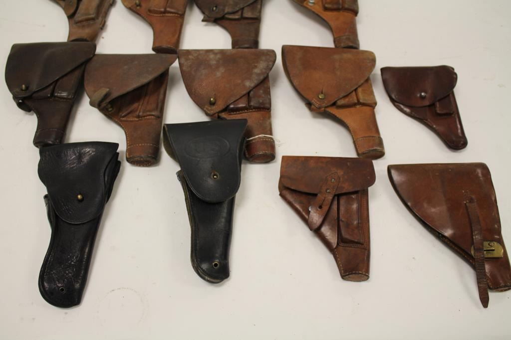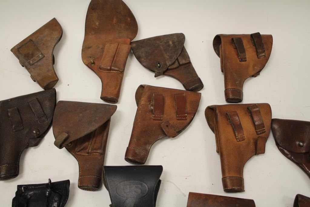 Large lot of military holsters; European, U.S.; WW II to 1950’s. Est.: $150-$300.