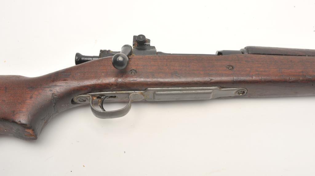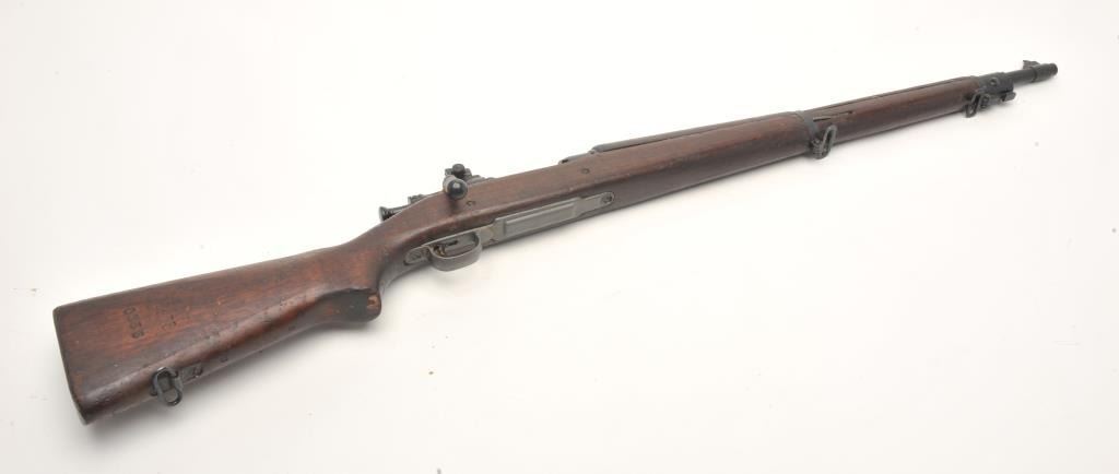 Remington U.S. Model 1903 A3 bolt action rifle, .30 caliber, serial #3567558. The rifle is in good overall condition with a 24” barrel with a blade front and military aperture style rear sights. The barrel andreceiver retain the majority of their military finish with significant residual packing grease evident. The Remington marked barrel is dated 8-44 with the flaming bomb emblem. The smooth wood stock is darkshowing storage marks, cartouches on the underside of the butt stock and a pair of non-matching serial numbers. The stock includes sling swivels and ends with a checkered steel butt plate with trap. Thebore is fair and may clean, the action is crisp and markings are sharp. The lot includes the CMP certificate of authenticity provided at purchase. (C+R) Est.: $250-$500.