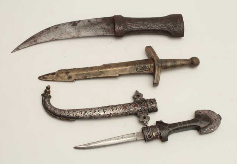 Lot 1968 Lot of 3 items as described: 1. Childs Jambia- Mid-East to N. Africa 2. Indian silver inlaid 3. Cast