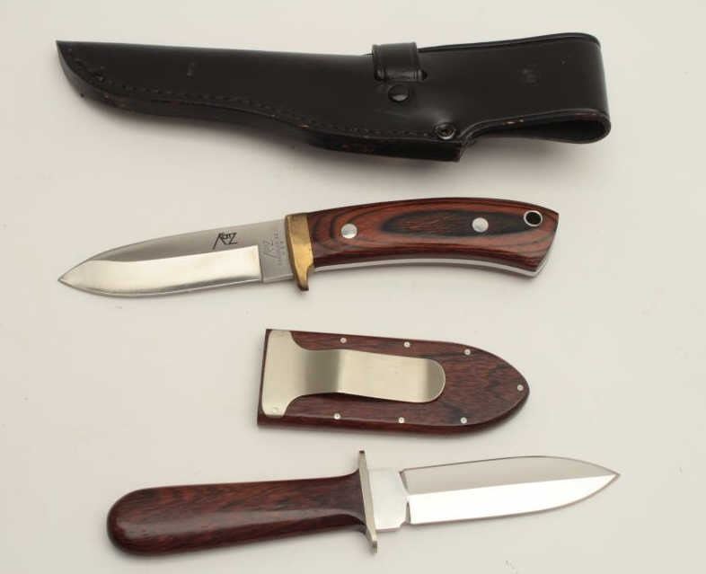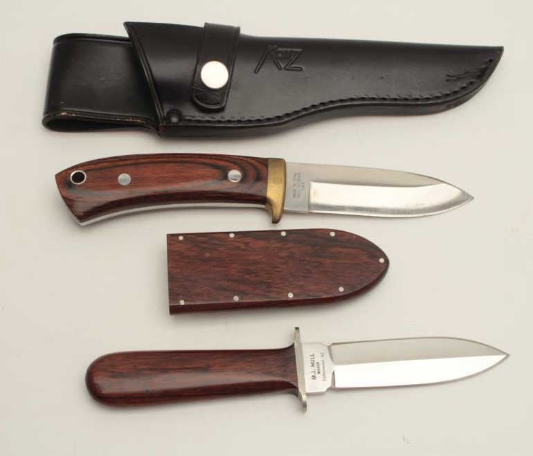 “Katz Chandler, AZ” marked knife along with “M.J. Hull, Cottonwood, AZ” dagger with wood sheaths. Est.: $150-$300