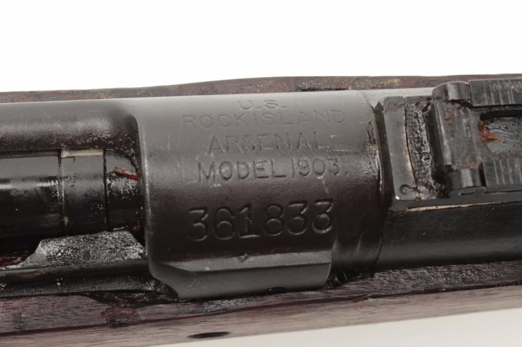 Lot 1989 Rock Island Arsenal U.S. Model 1903 bolt action rifle, .30 caliber, serial #361833. The rifle is