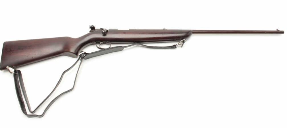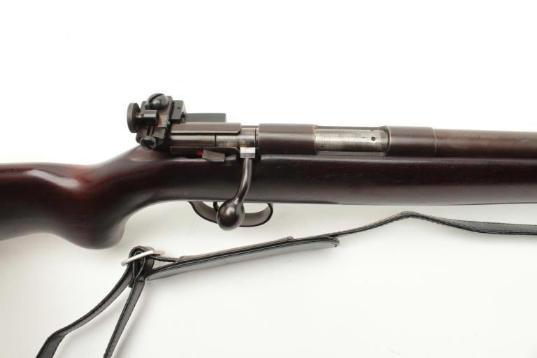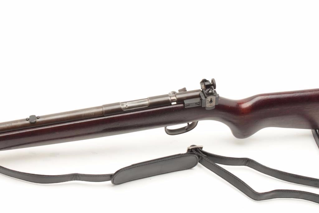 Remington Targetmaster .22 caliber bolt action single shot rifle, NSNV with Lyman front sight added. Large non factory swivels. In good overall condition. The bore is bright. Est.: $100-$200