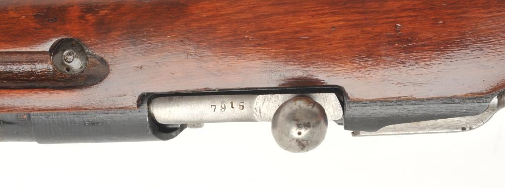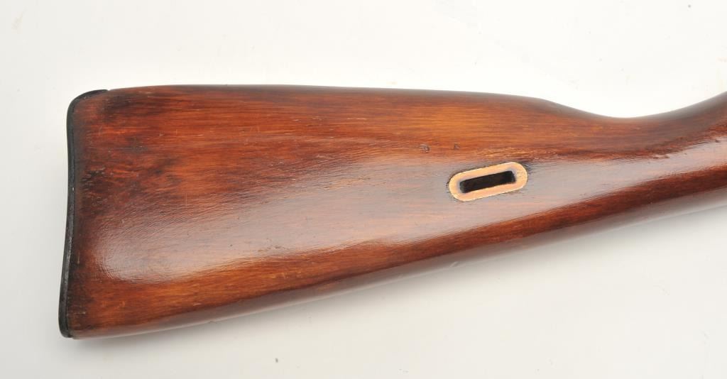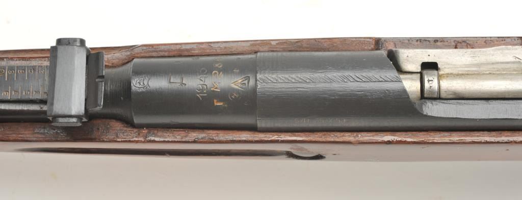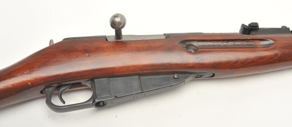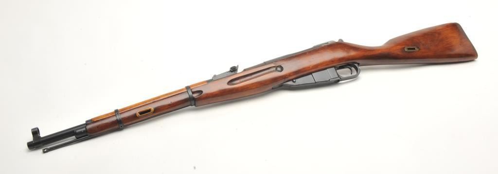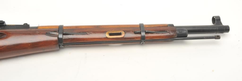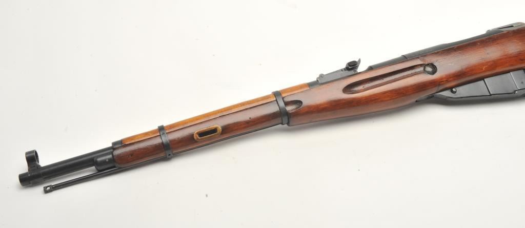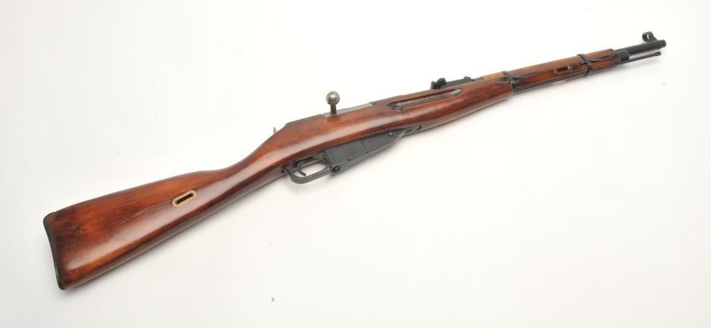 Russian Mosin Nagant Model M38 carbine, 7.62 x 54 caliber, serial #RM2862. The carbine is in very good overall condition with a 21” barrel with a hooded front and military tangent style rear sights. The barrel andreceiver retain the majority of their military finish. The receiver has numerous proofs with the front ring dated 1943. The smooth wood stock is in very good condition with storage marks and a smooth metal buttplate. The action is import marked. The bore is fair, the action crisp and markings are sharp. (C+R) Est.: $175-$350.