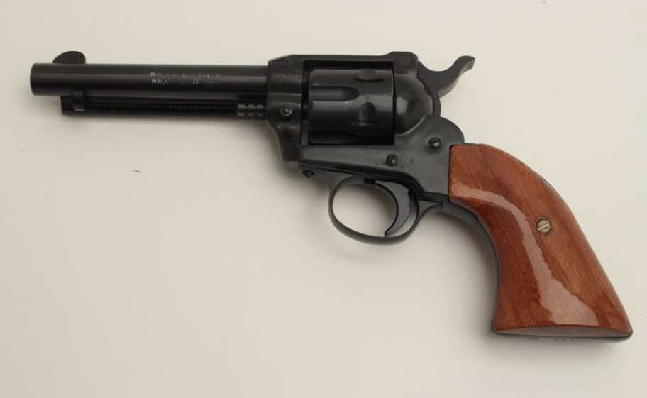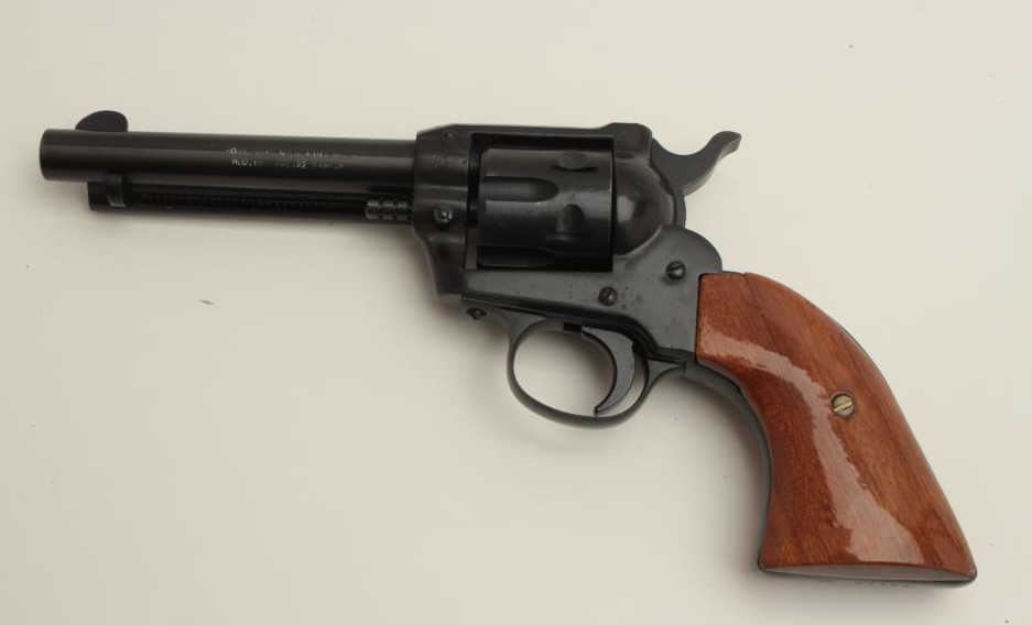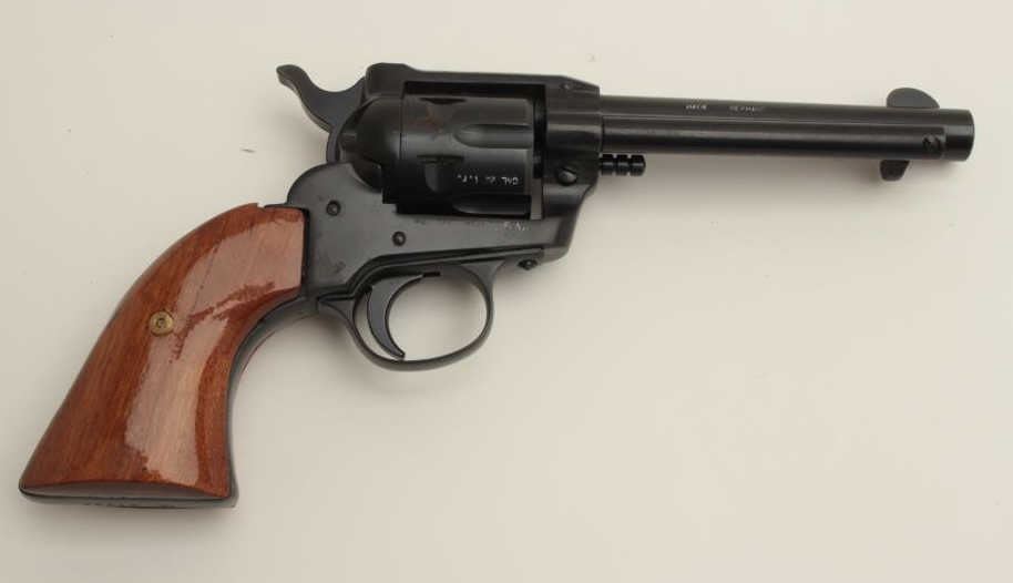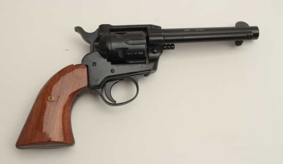 Rohm Model 66 single action revolver, .22 Magnum caliber, 4.75” barrel, black finish, wood grips, S/N IC 67786, in overall fine condition. (Modern/PPT). Est.: $100-$200.