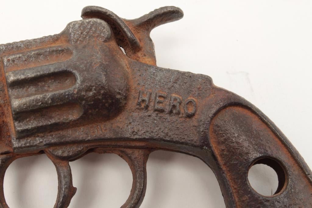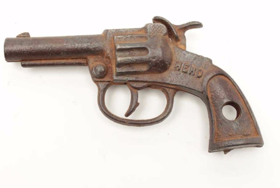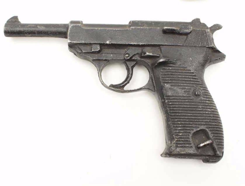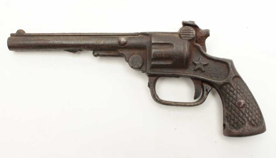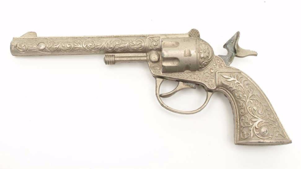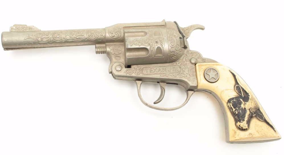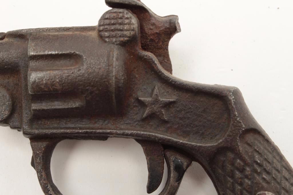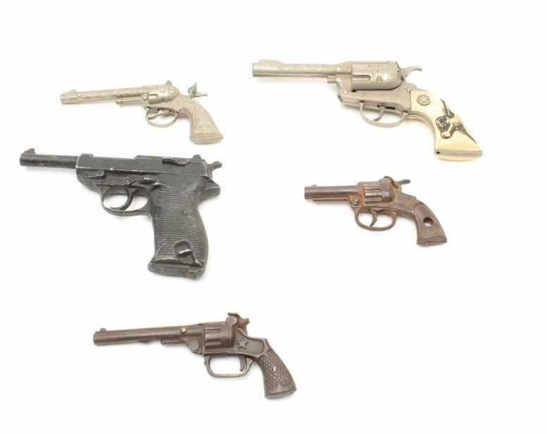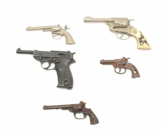Lot of 4 misc. older cap guns and a solid non-gun metal copy of a P-38 pistol. Est.: $100-$200.