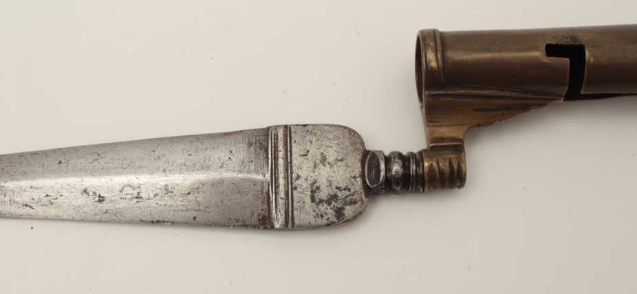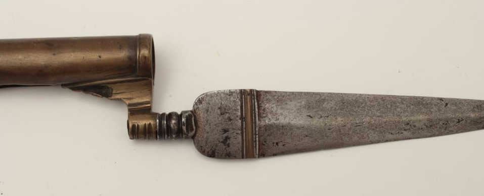 Lot 2065 Eighteenth Century bayonet for a European Sporting gun, approximately 10” overall with a 6.5” blad