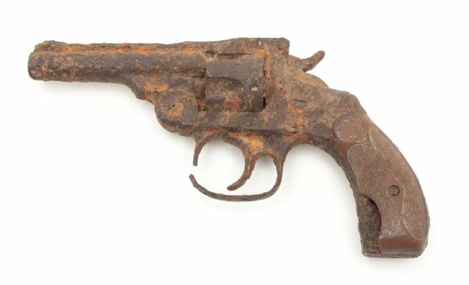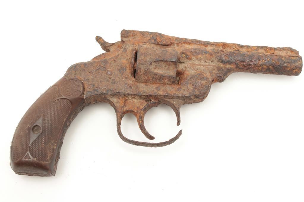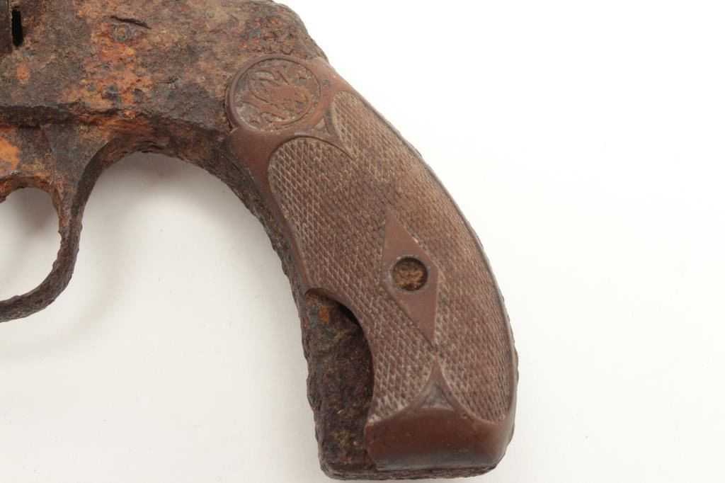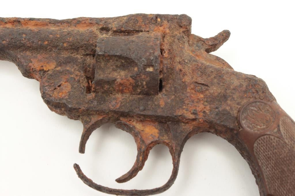 Lot 2076 Relic dug-up Smith & Wesson top break revolver, .32 caliber, no visible S/N. (Antique). E