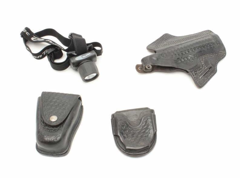 L.A. County Sheriff gear as described: 1. 92F holster 2. 2 double handcuff cases 3. Tactical head light Est.: $75-$150