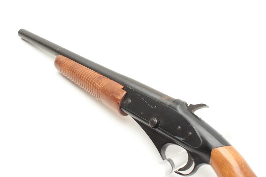 Lot 2080 Stevens Model 95 Single Shot Shotgun in 12 GA with exposed hammer and barrel reduced to 18 ½”. Fai