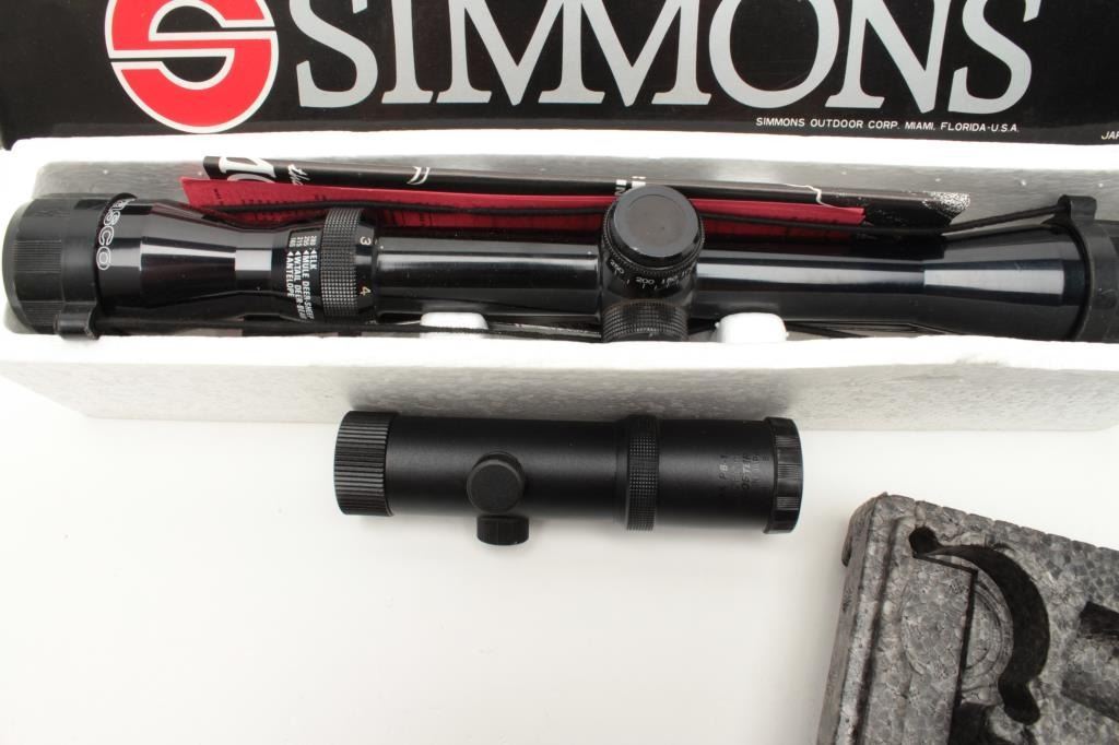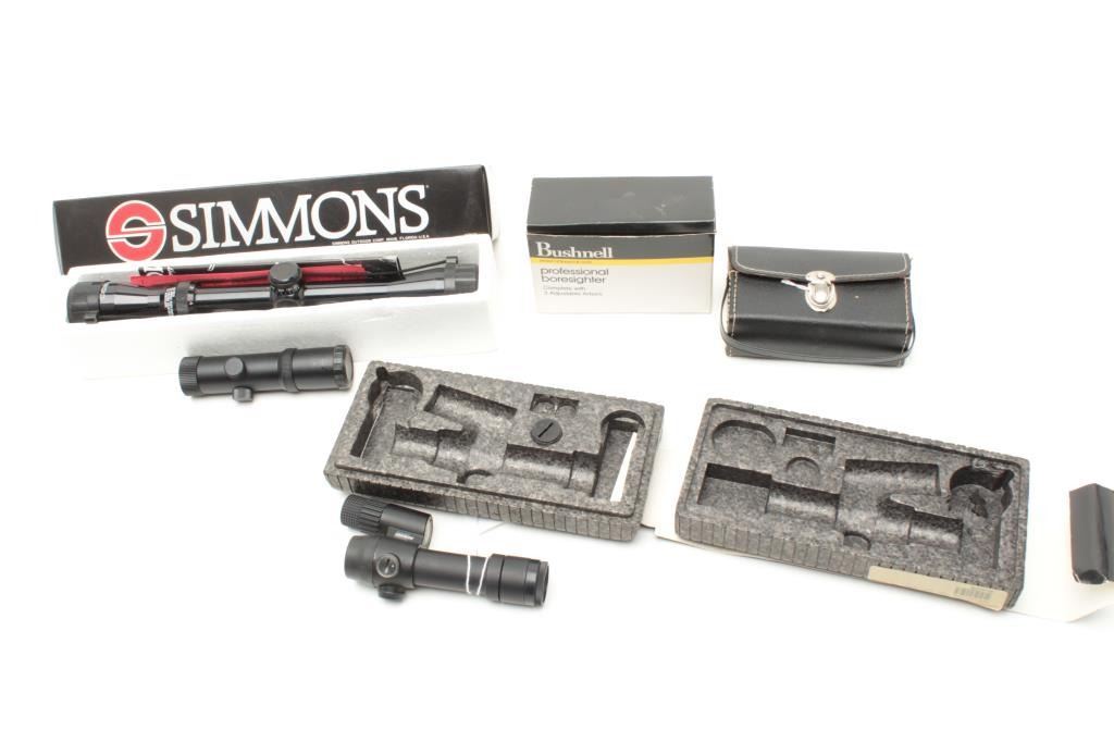 Tasco scope, Bushnell Boresighter, Bushnell Boresighter 74-3333, Tasco 3x scope, and Aim Point 2000. Est.: $75-$150