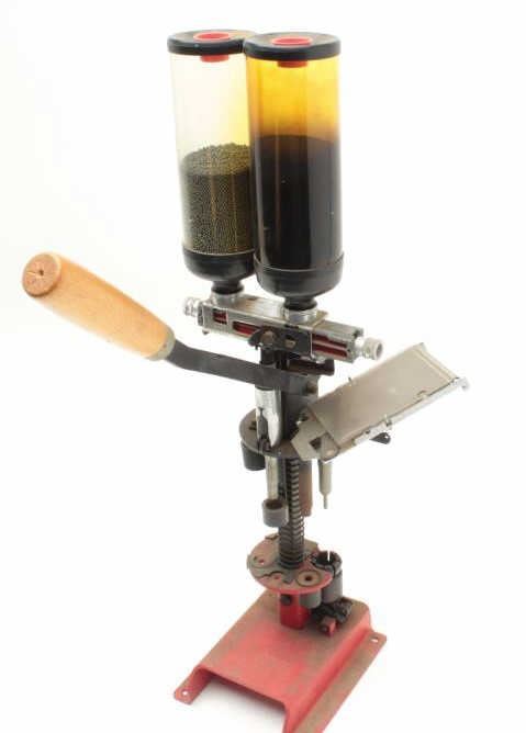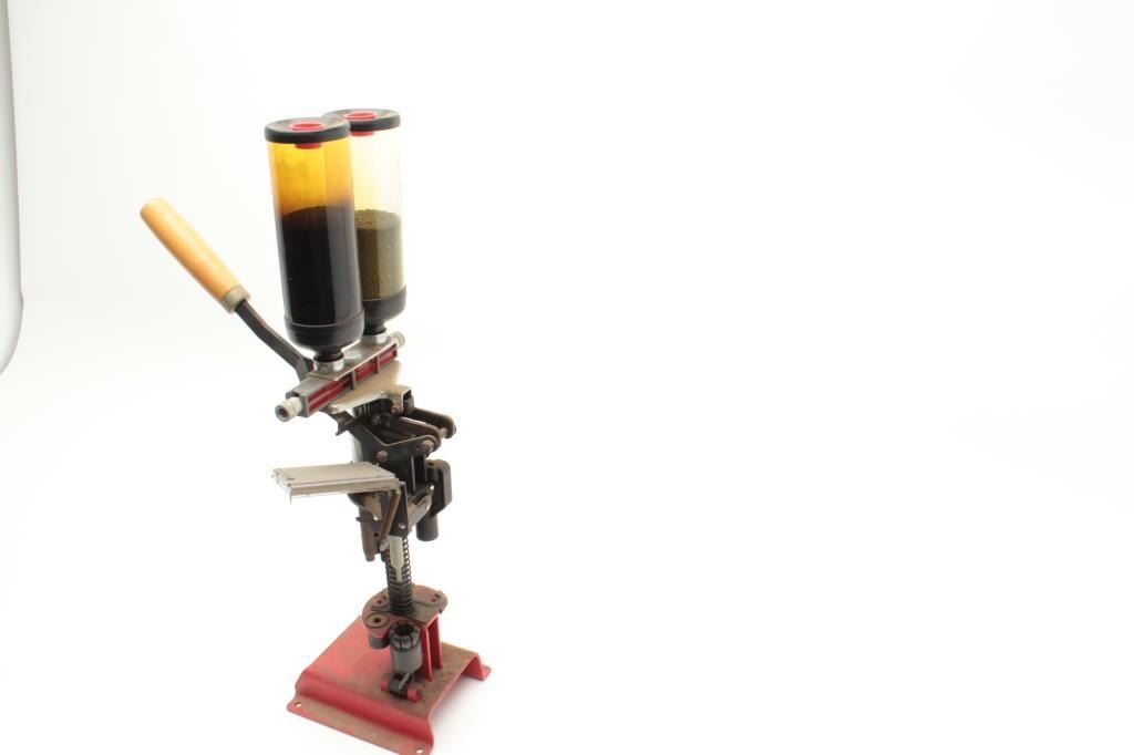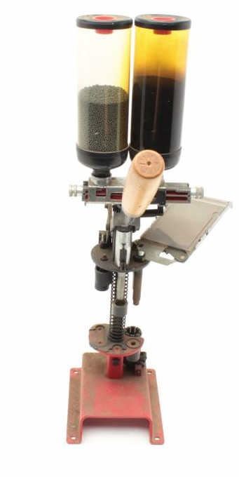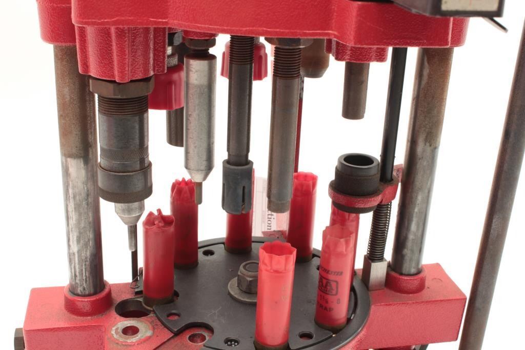 Lot of 2 shotgun reloading presses, 1 Hornady and 1 MEC with box of clay targets.
