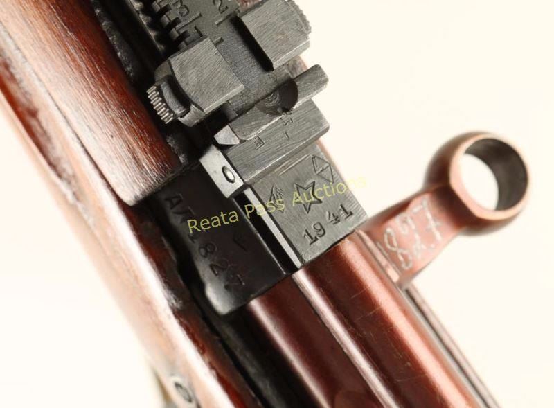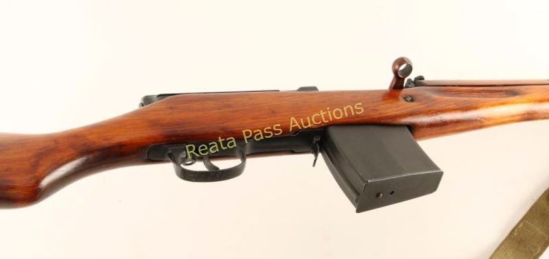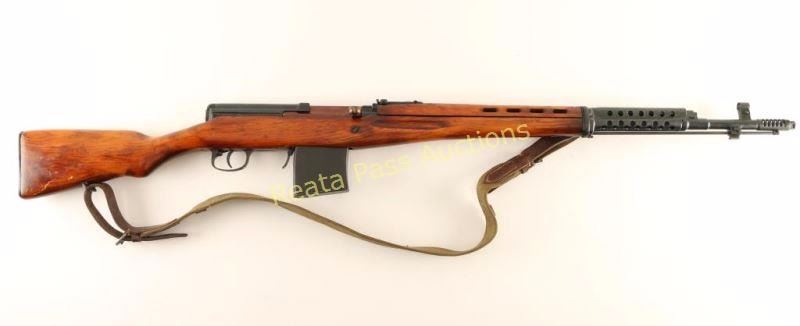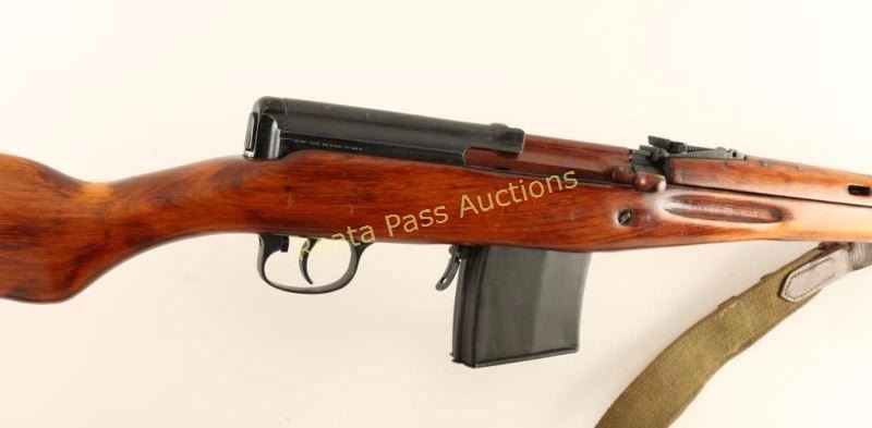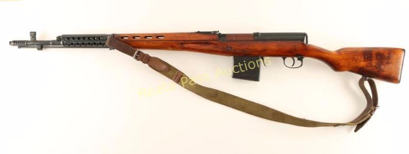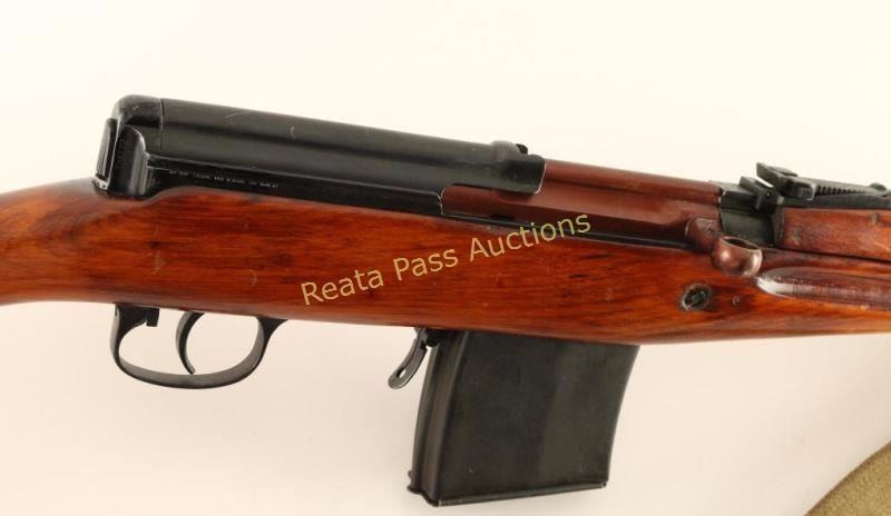 'M1940' Russian military gas operated semi-automatic service rifle chambered in 7.62x54Rmm, circa 1941. Manufactured at the Tula arsenal and imported by C.D.I. of Swanton, V.T. with discrete import marks on the right side of the receiver. Features a blued finish, 26.5" barrel with integral muzzle break, bayonet lug, hooded post front sight, graduated rear sight to 1,500 meters, cleaning rod, manual safety, 10 round detachable magazine, folding magazine release, integral scope slots on the receiver, green canvas sling, stripper clip guide in the top cover, ventilated metal upper handguard, smooth hardwood ventilated handguard and semi-pistol grip shoulder stock with smooth metal buttplate. Serial numbers match on receiver, stock, trigger guard(electro pencil) and bolt(electro pencil). Rifle exhibits approximately 95% of it's blued finish showing some light wear on the metal handguard, an areas of black paint or phosphate finish on the rear of the receiver and the bolt is plum. Action is very smooth, bore is very good and wood stocks are near fine with few blemishes. Condition is near excellent. ***C&R Firearm*** ***Modern Firearm***