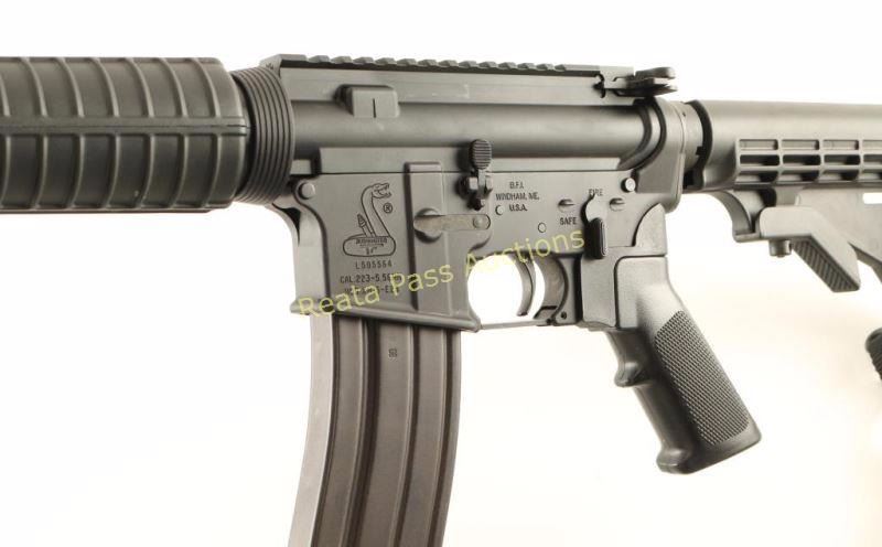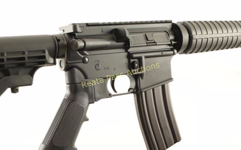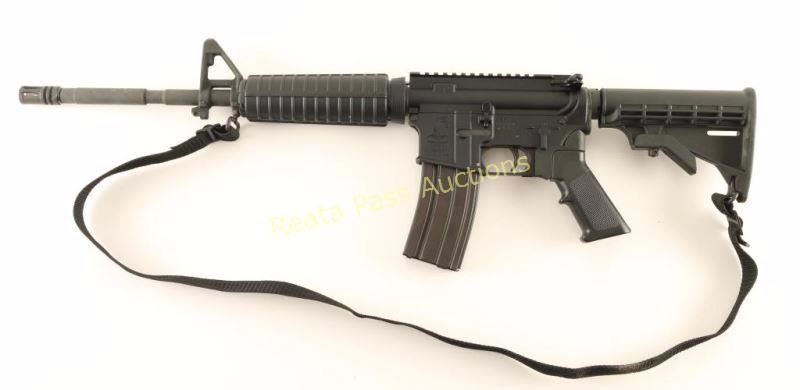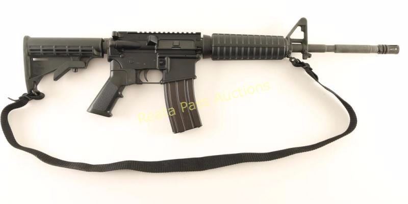 Semi automatic AR platform rifle chambered in 5.56 NATO. Features a matte black finish, 16.25" M4 profile barrel, birdcage style flash hider, A2 winged post front sight with bayonet lug, flat top receiver, forward assist, shell defector, dust cover, AR-15 BCG, push button magazine release, 30 round steel magazine, single stage trigger, manual safety, black nylon sling, Rite-Pull grip adapter with A2 style black synthetic pistol grip, carbine length handguard and six-position telescoping shoulder stock. Rifle retains approximately 99% of it's black finish on the receiver and shows a parkerized finish on the barrel which exhibits some rubs. Action is smooth, bore is excellent, and stocks are fine. Condition is near excellent. ***Modern Firearm***