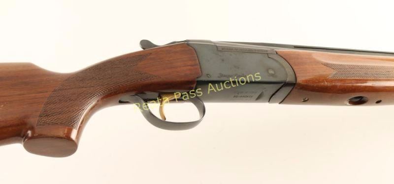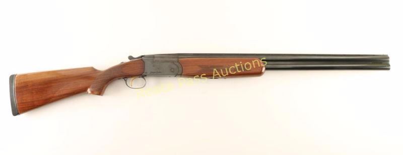 SN: R14264-04 Blued, over/under, shotgun with 28" barrels, 3" chamber, changeable chokes, raised ventilated sight rib, mid and front beads, ejectors, inertia re-set single trigger, 2-piece checkered wood stock, recoil pad and an automatic safety with barrel selector. Made in Brasil for Stoeger Ind. Bluing is in very good condition with only a few spots of wear and one tiny mark near the muzzles. The monobloc and forend iron are turning to plum. T4rigger guard is fading to a dark grey with few scratches and little edge wear. The tang beneath the safety is worn to bare metal in ~40% of the area. Forend has wear through the varnish and many rubs and tiny dings. The butt has scratches and rubs. The recoil pad is poorly fitted but in good usable condition. Overall condition is Boers are dirty but may clean to better. Action works well. Condition is good to very good. *Modern Firearm*