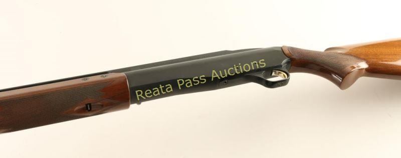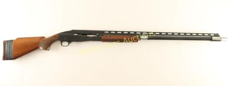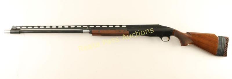 Japanese made single shot trap shotgun chambered for 2 3/4" 12 Gauge trap loaded shells, circa 1994. Features a matte black finish, 30" barrel with removable Invector Plus full choke, large adjustable raised ventilation rib, white beaded sights, proprietary recoilless action, alloy receiver, smooth wide gold trigger, high gloss checkered walnut forend and pistol grip shoulder stock with extension & factory recoil pad. Shotgun exhibits approximately 93% of it's original finish showing some rubs, buggered screw holes at the front of the rib and light scattered edge wear on the rib. Action is sound, bore is pristine and wood stocks are fine. Condition is very good++. ***Modern Firearm***