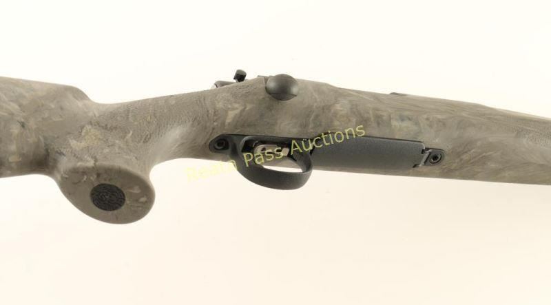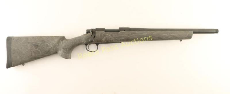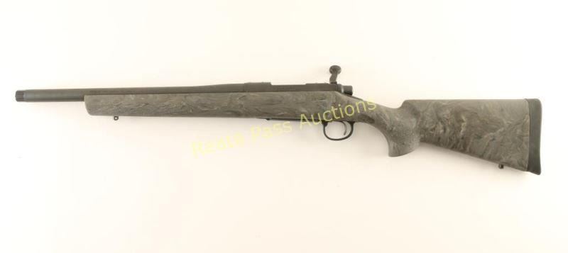 American made bolt action sporting rifle chambered in .300 AAC Blackout. Features a matte black finish, heavy 16.5" 5-R Tactical threaded barrel with no provision for sights, drilled & tapped receiver, manual safety, checkered bolt handle knob, smooth adjustable trigger, integral box magazine with hinged plastic floorplate, plastic triggerguard, swivel studs, and Hogue pebbled grey rubber overmolded pistol grip shoulder stock with semi-beavertail forend & soft rubber recoil pad. Rifle exhibits approximately 99% of it's original finish with little to no visible wear. Action is smooth. bore is pristine and stock is fine. Condition is near new. ***Modern Firearm***