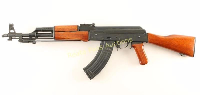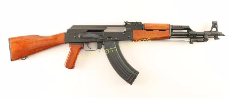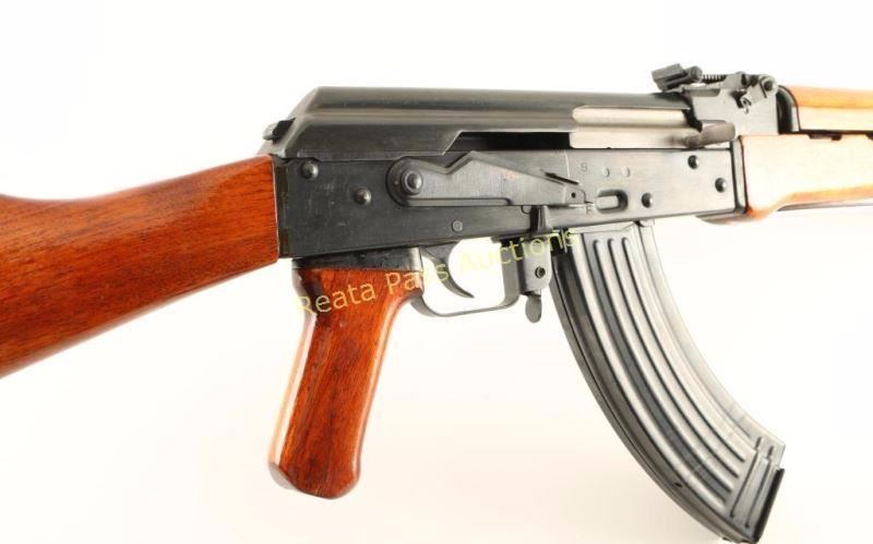 Early & desirable Chinese made semi-automatic AK platform rifle chambered in 7.62x39mm. Imported by F.T.C. of Woodland Hills, C.A. with import marks on the receiver. Features a blued finish, 16.25" barrel, slant muzzle break, shrouded post front sight, graduated rear sight to 800 meters, folding spike bayonet, manual safety, cleaning rod, 30 round steel magazine, high gloss smooth wood handguard, forend, pistol grip and shoulder stock with trapdoor buttplate that contains a cleaning kit. Rifle exhibits approximately 97% of it's original finish showing light scattered handling marks and a drag line on the receiver from the safety. Action is smooth, bore is excellent and stocks are fine. Condition is excellent. ***Modern Firearm***