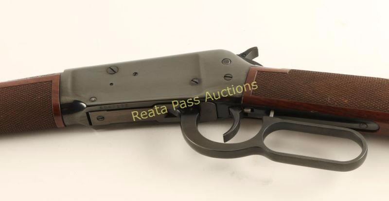 'Angle Eject' Lever-action repeating rifle chambered in the scare .307 Winchester caliber. Features a blued finish, 20" barrel, ramped & hooded blade front sight, adjustable flip-up rear sight, full-length magazine tube with removable swivel stud, drilled & tapped receiver, beveled trigger, checkered hammer spur extension, push button safety, grip safety, checkered walnut forend and straight grip shoulder stock with swivel stud & thin factory recoil pad. Rifle exhibits approximately 98% of it's original finish showing a few superficial scratches/handling marks with no major wear observed. Action is smooth, bore is pristine and wood stocks are fine. Condition is excellent. ***Modern Firearm***