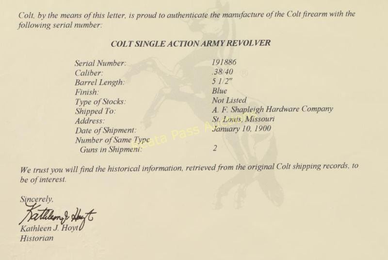 Lot 108 Colt Single Action Army .38 WCF SN: 191886