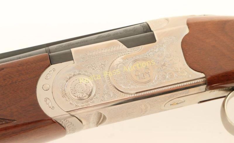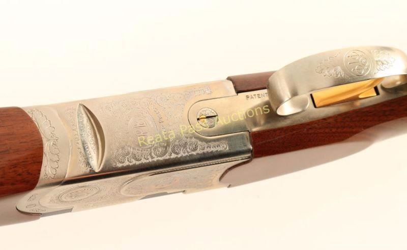 Engraved Italian made under/over double barrel shotgun chambered for 2 3/4" & 3" 20 gauge shells, circa 1999. Features blued 26 1/2" barrels with ventilation rib & modified/improved cylinder removable chokes, automatic ejectors, white bead front sight, silver bead mid-sight, scroll engraved electroless nickel finished receiver, single smooth gold trigger, sliding tang safety with sliding barrel selector, high gloss checkered walnut Schnabel forend and pistol grip shoulder stock with Kick-Eez recoil pad. Shotgun exhibits approximately 99%+ of it's finish with only a few light handling marks observed near the muzzle on the bottom barrel. Action is crisp, bores are pristine and wood stocks are near fine with a few light dings on the left side of the shoulder stock. Condition is excellent. ***Modern Firearm***