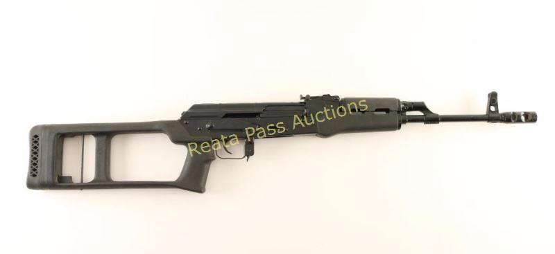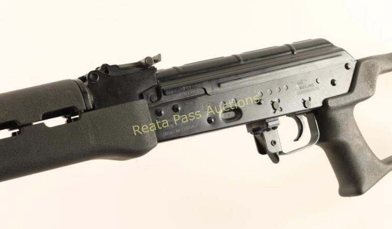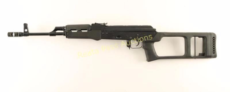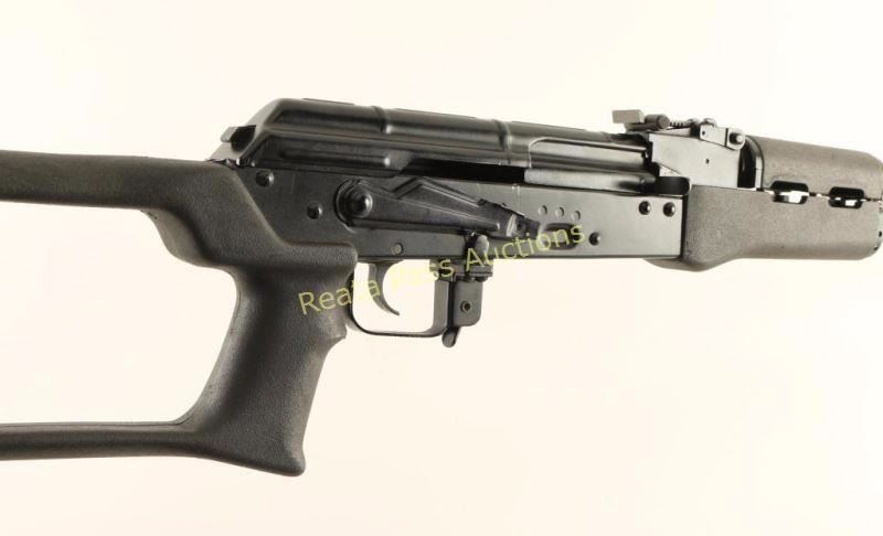 Hungarian AK style semi-automatic rifle chambered in 7.62x39mm. Imported by K.B.I. Inc of Harrisburg, P.A. with import marks on the receiver. Features a black painted finish, 16.25" barrel with pinned muzzle break, winged post front sight, graduated rear sight to 800 meters, smooth trigger, no magazine or bayonet lug, manual safety, and Choate Dragunov style black synthetic stock set. Rifle exhibits approximately 94% of it's black finish with a couple fine scratches on the barrel and losses on the muzzle break & magazine latch. Action is smooth, bore appears excellent with light debris and synthetic stocks are fine. Condition is very good+++. ***Modern Firearm***