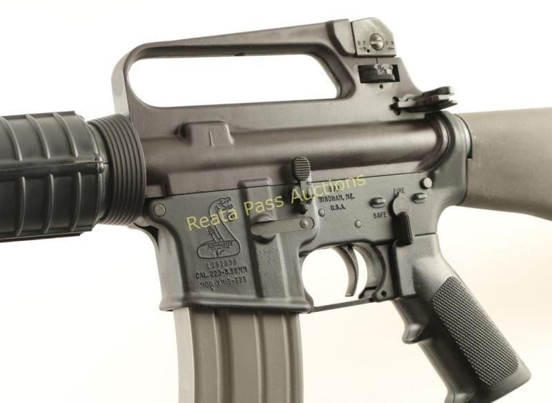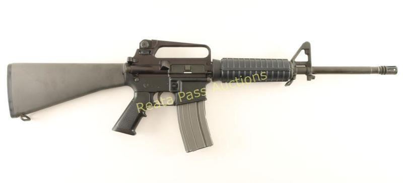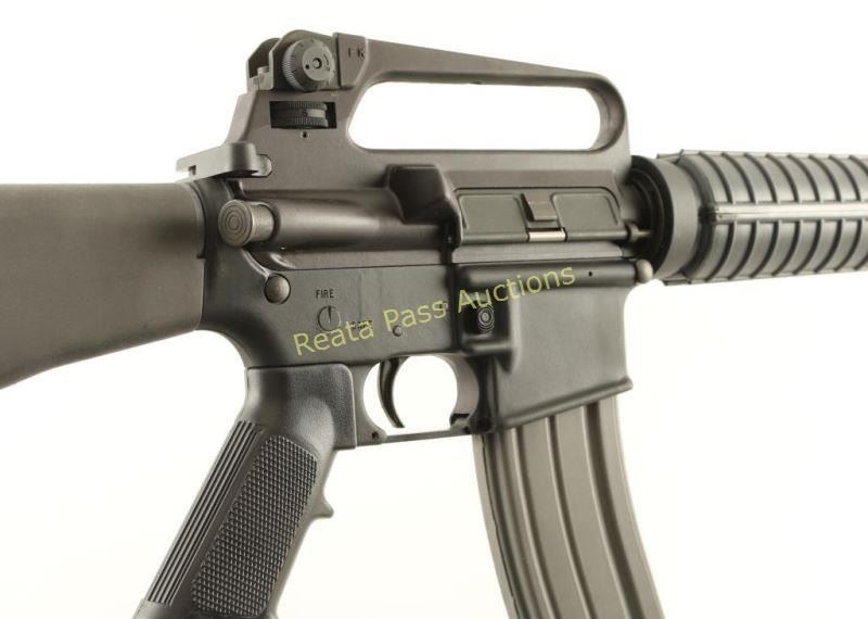 Gas-operated semi-automatic AR platform rifle chambered in 5.56mm NATO. Features a matte black finish, 16.25" HBAR 1:9 twist barrel, birdcage style flash hider, A2 winged post front sight with bayonet lug, carry handle upper receiver with an adjustable dual aperture rear sight, single stage trigger, AR-15 BCG, forward assist, dust cover, sling swivels, shell deflector, 30 round magazine, manual safety, A2 style pistol grip, carbine length handguard and A2 style shoulder stock with trapdoor buttplate. Includes a foam lined cardboard box with spare magazine, Army/Marine M16A2 W/E manual and two slings. Rifle exhibits approximately 98% of it's black finish showing very little wear. Action is crisp, bore is pristine, and stocks are fine. Condition is excellent. ***Modern Firearm***
