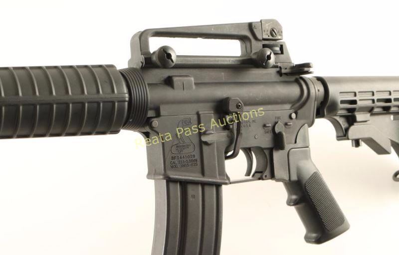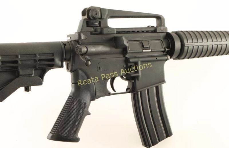 Semi automatic AR platform rifle chambered in 5.56 NATO. Features a matte black finish, 16.25" HBAR barrel with integral flash hider, A2 winged post front sight with bayonet lug, adjustable dual aperture rear sight in the removable carrying handle, forward assist, shell defector, dust cover, AR-15 BCG, push button magazine release, 30 round steel magazine, manual safety, sling swivels, Magpul BAD Lever extended bolt catch, Rite-Pull grip adapter with A2 style black synthetic pistol grip, carbine length handguard and six-position telescoping shoulder stock with Viking recoil pad. Rifle exhibits approximately 90% of it's original finish showing light wear, numerous handling marks/rubs and some scattered light scratches. Action is smooth, bore is excellent, and stocks are fine. Condition is very good+++. ***Modern Firearm***