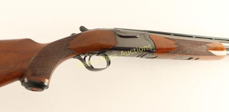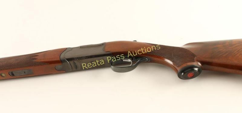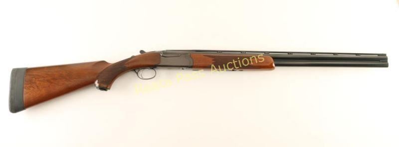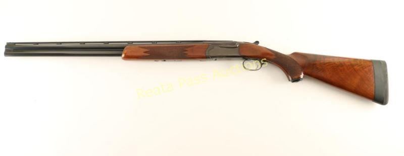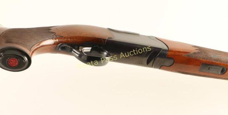 Quality American made under/over double barrel box-lock shotgun chambered for 20 gauge shells, circa 1981. Features a blued finish, skeet choked 26" barrels with 3" chambers, a ventilated top rib & selective automatic ejectors, brass bead front sight, single trigger, sliding tang safety/barrel selector, checkered walnut forend and pistol grip shoulder stock with black pistol grip cap, black extensions, Decelerator recoil pad & 15 1/4" LOP. Shotgun exhibits approximately 90% of it's original blued finish showing carrying wear on the underside of the receiver, wear around the safety/barrel selector, a couple bight dings along the right edge of the matted rib and a few light scattered scratches on the barrel. The receiver and the portion of the barrel above the chambers have turned plum. Action is crisp, bores are pristine and wood stocks are near fine with minimal blemishes. Condition is very good+++. ***Modern Firearm***