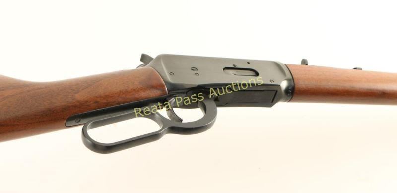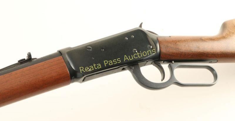 'Eastern Carbine' Lever action repeating rifle chambered in .30-30 Winchester, circa 1979. Features a blued finish, 20" barrel, ramped & hooded blade front sight, adjustable rear sporting sight, full length tube magazine, beveled trigger, serrated hammer spur, drilled & tapped receiver for side mounted sights, smooth walnut forend and straight grip shoulder stock with factory checkered black hard rubber buttplate. Rifle retains approximately 99% of it's original blued finish with only minor slide wear on the lever observed. Action is smooth, bore is pristine, and wood stocks are fine. Condition is near new. ***Modern Firearm***