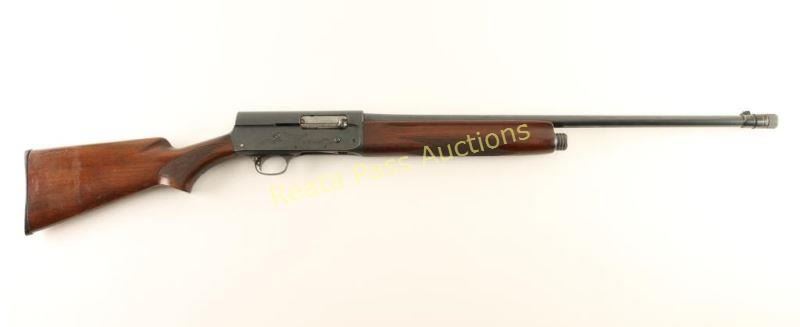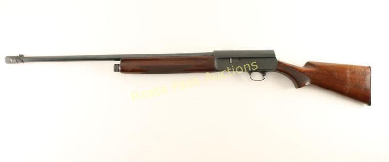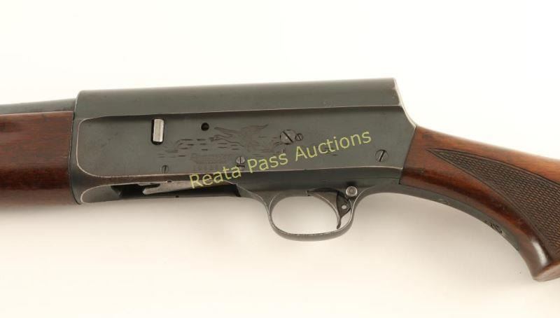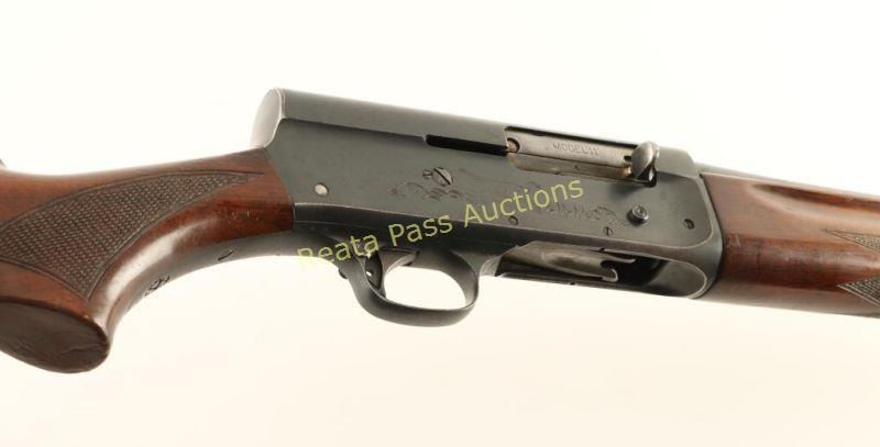 Blued, semi-automatic, tube magazine fed shotgun with a 26" barrel (including Poly-Choke), barrel is marked full choke, 2.75" chamber, bead front sight, dark checkered hardwood furniture and an oversized black plastic buttplate. Bluing has faded to grey with edge wear and freckling from surface rust. The bore is mirror bright. The action works well. The forend has worn finish with dings and scratches while the butt finish has crazed with scuffs, scratches and dings. The butt plate extends above the stock lines and is dull with scuffs. Condition is good. *Modern Firearm*