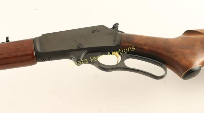 American made lever-action repeating rifle chambered in .30-30 Winchester, circa 1980. Features a blued finish, 20.25" 'JM' marked barrel, full-length tube magazine, ramped blade front sight, adjustable rear sporting sight, drilled & tapped receiver, curved lever, smooth gold trigger, hammer extension, smooth American walnut semi-beavertail forend and pistol grip shoulder stock with black grip cap & factory buttplate. Rifle retains approximately 90% of it's original blued finish showing light scattered wear & surface rust. Action is smooth, bore is very good and wood stocks are very good. Condition is good to very good. ***Modern Firearm***