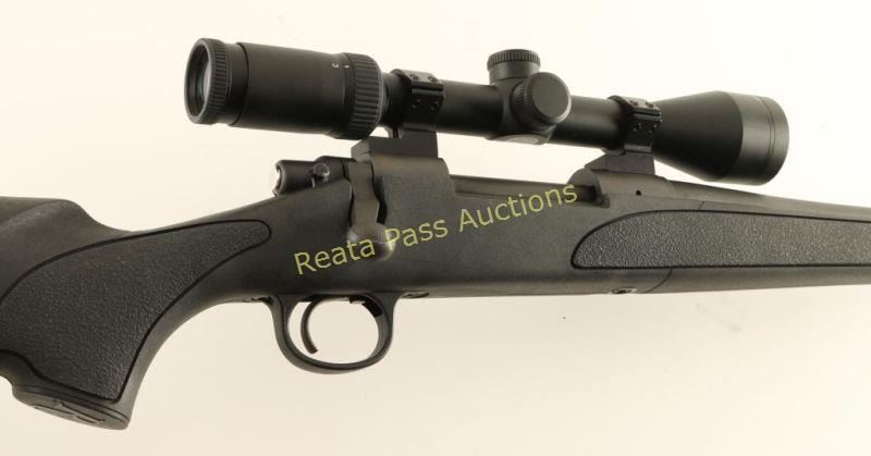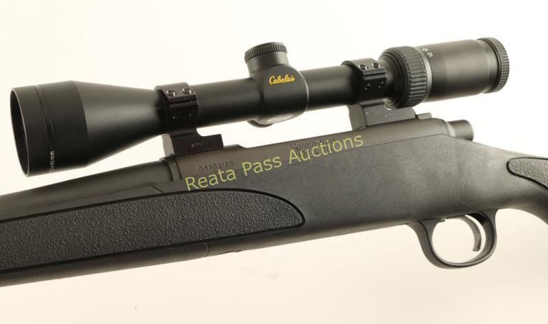 American made bolt-action sporting rifle chambered in .270 Winchester. Features a matte black finish, 24" tapered barrel with no provisions for sights, Cabela's 3-12x scope on Talley rings, smooth adjustable trigger, checkered bolt handle, manual safety, integral box magazine and black synthetic pistol grip shoulder stock with cheek rest, swivel studs and factory recoil pad. Rifle exhibits approximately 98% of it's original finish showing a few light scuffs/handling marks on the barrel. Action is smooth, bore is excellent, optics are clear, and synthetic stock is fine. Condition is excellent. ***Modern Firearm***