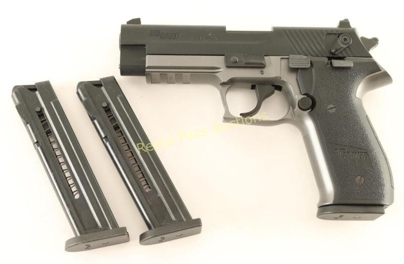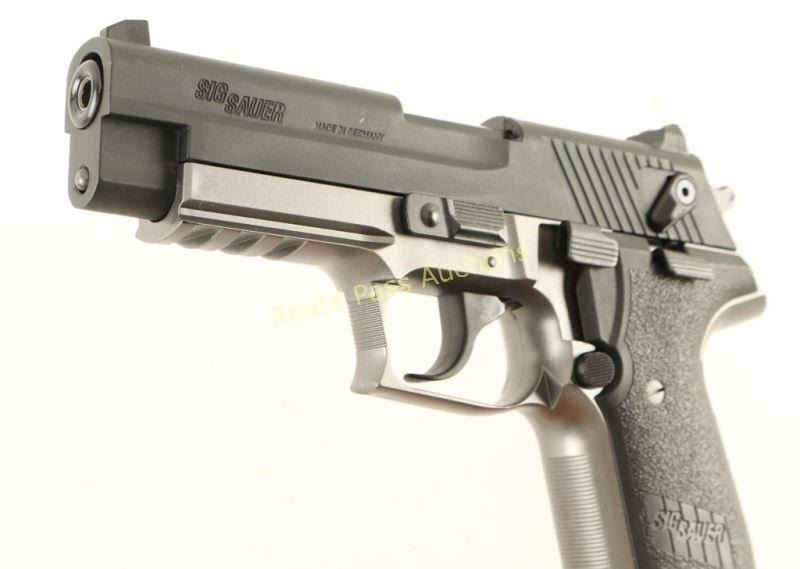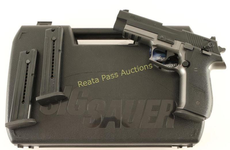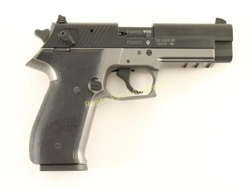 German made double action semi-automatic pistol chambered in .22 Long Rifle. Features a matte black finish, 3.9" barrel, three-dot high contrast sights with drift adjustable rear, ambidextrous thumb safety, smooth trigger, serrated round hammer spur, thumb decocker, push button magazine release, 10 round magazine, gun metal grey polymer frame with integral accessory rail and Sig two-piece textures black synthetic wrap-around grips. Includes the original factory hard case with two spare magazines and a small bag of spare parts. Pistol exhibits approximately 98% of it's original finish showing a couple scuffs to the matte finished slide with no other wear observed. Action is smooth, bore is excellent and polymer is fine. Condition is excellent in box. ***Modern Firearm***