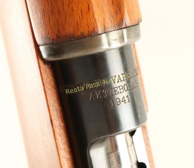 Swedish military bolt action service rifle chambered in 6.5x55mm, circa 1941. Imported by C.D.I. of Swan, V.T. with small import marks on the underside of the barrel. Features a blued finish, 23.5" barrel, blade front sight, graduated rear sight to 600 meters, cleaning rod, bent bolt handle, manual safety, sling swivels, internal box magazine, smooth wood handguard and straight grip shoulder stock with metal buttplate and inlayed brass disc. Matching serial numbers on the receiver, bolt handle, bolt sleeve and buttplate. Rifle retains approximately 80% of it's blued finish showing small scattered dings/losses on the exposed portion of the barrel, light wear on the receiver and heavy wear on the floorplate. Action is smooth, bore is very good+ and wood stocks are fine. Condition is very good. ***C&R Firearm*** ***Modern Firearm***