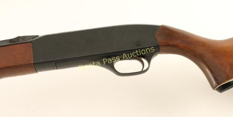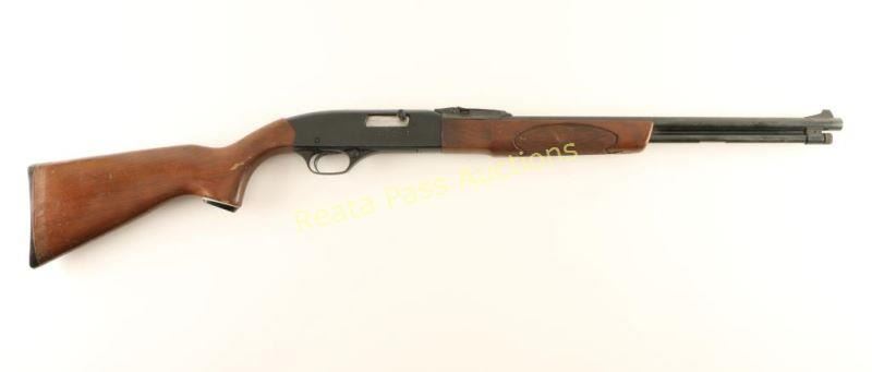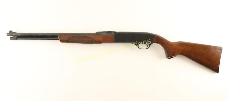 Semi-automatic, tube magazine fed, rifle with alloy receiver and trigger group, steel barrel and magazine. Metal finish is good overall with slight edge wear. The rear sight says that this is a model 250 but they are lever action rifles. I believe that this is possibly a model 190 with a model; 250 barrel on it. The safety does not appear to be working. The receiver is cast to accept scope mount. Bore is shiny with good rifling. Adjustable rear sight is a little loose. Forend has been (not professionally) checkered and bordered. There has been a grip cap added on but it is a poor fit. The buttplate is plastic. The wood has many dings, scrapes and rubs. Condition is fair. *Modern Firearm*