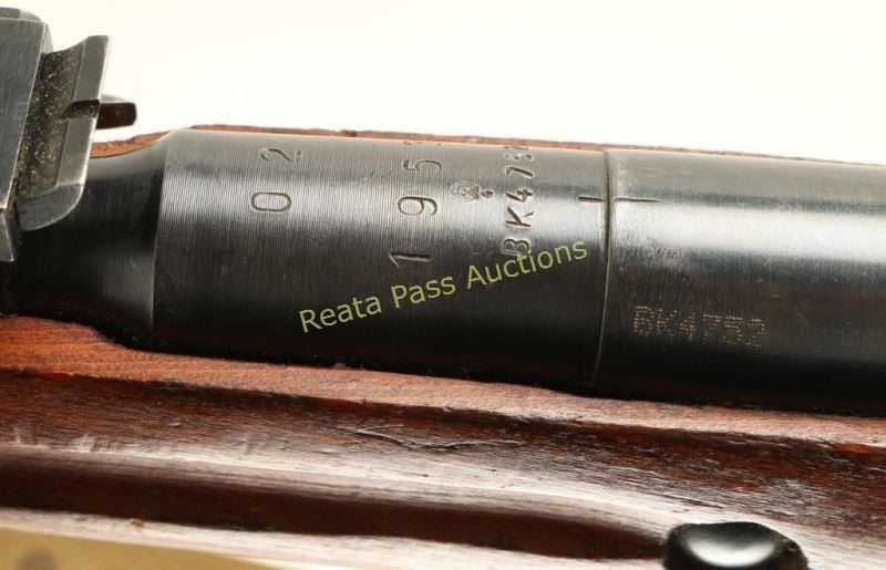 SN: BK4752 Hungarian bolt action service rifle chambered in 7.62x54Rmm, circa 1953. Imported by CAI of Georgia, Vermont with import marks on barrel. Features a blued finish, 20.25" barrel marked "02", hooded post front sight, graduated rear sight to 1,000 meters, folding spike bayonet, cleaning rod, smooth trigger, two barrel bands, 5 round fixed magazine, straight bolt handle, green canvas sling, smooth wood handguard and straight grip shoulder stock with metal buttplate. Matching serial numbers on the barrel, receiver, bolt, floorplate and buttplate. Rifle retains approximately 78% of it's thinning blued finish showing a bright ring around the muzzle, some high point edge wear, and handling marks. Action is smooth, bore is very good and wood stocks are very good with an average amount of blemishes. Condition is good to very good. ***C&R Firearm*** ***Modern Firearm***