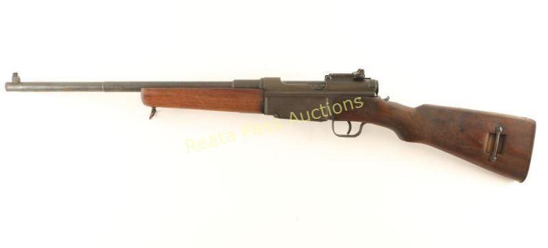 Sporterized French military bolt action service rifle chambered in 7.5x54mm. Features a blued finish, 18.5" barrel marked "SANTE FE MODEL 1949", dovetailed blade front sight, graduated rear aperture sight to 1,200 meters, smooth trigger, manual safety, integral box magazine with removable floorplate, angled bolt handle, smooth wood forend and semi-pistol grip shoulder stock with metal buttplate. Rifle exhibits approximately 70% of it's old blued refinish showing moderate wear and scattered light surface rust throughout. Action is smooth, bore is very good+ and wood stocks are good. Condition is fair to good. ***C&R Firearm*** ***Modern Firearm***
