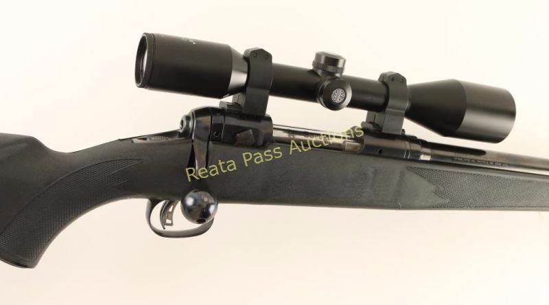 American made bolt action sporting rifle chambered in .223 Remington. Features a blued finish, heavy 26" button-rifled barrel with 1/9 twist & no provisions for sights, Eurolux 6x 42mm scope, adjustable AccuTrigger, internal box magazine, sliding tang safety, straight bolt handle with oversized knob, swivel studs and checkered black synthetic pistol grip shoulder stock with rubber recoil pad & dual pillar bedding. Rifle retains approximately 96% of it's original finish showing a few small scattered losses and light handling marks. Action is very smooth, bore is excellent and synthetic stock is fine. Condition is near excellent. ***Modern Firearm***