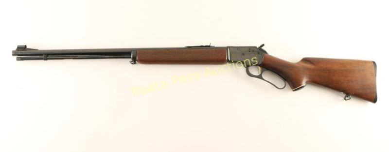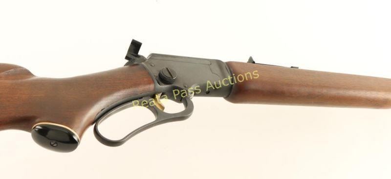 Take-down lever action repeating rifle chambered in .22 Short, Long or Long Rifle, circa 1960-1983. Features a blued finish, 24" 'JM' marked barrel, ramped & hooded blade front sight with brass bead, adjustable rear sporting sight, full-length tube magazine, drilled & tapped receiver, smooth gold trigger, take-down receiver, sling swivels, JM hammer extension, smooth semi-beavertail walnut forend and pistol grip shoulder stock with black grip cap and factory hard rubber buttplate. Rifle exhibits approximately 85% of it's original blued finish showing slide wear on the lever and some handing marks/scratches & small areas of scattered wear on the barrel. Action is smooth, micro-groove bore is very good+ and wood stocks are very good. Condition is very good. ***Modern Firearm***
