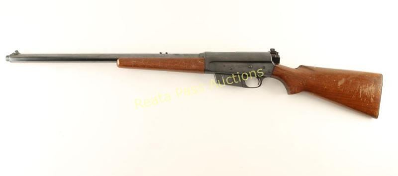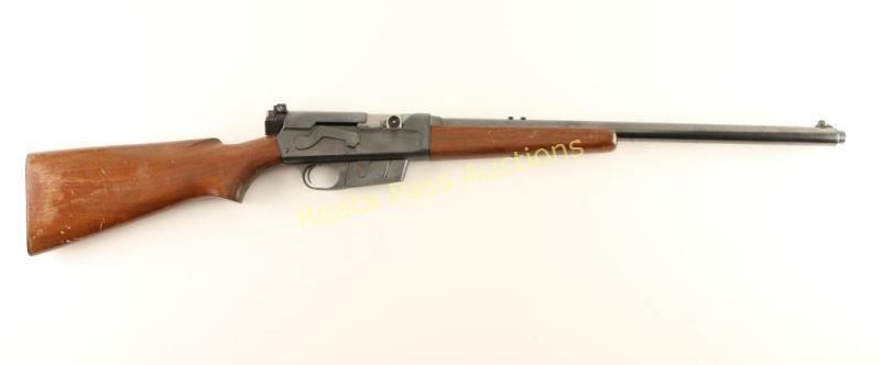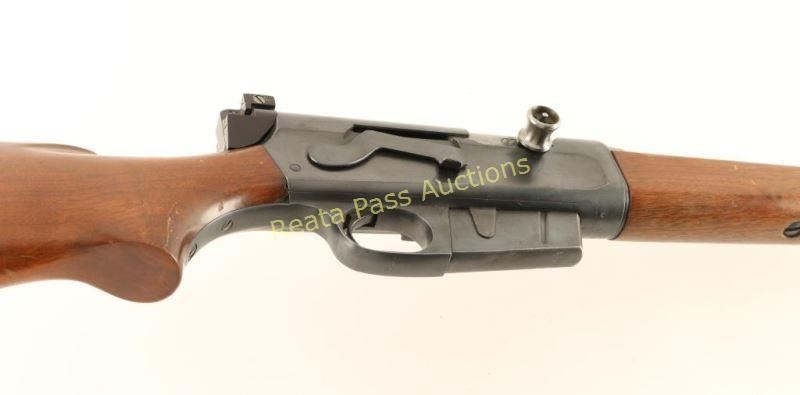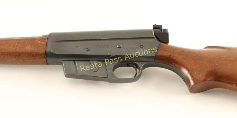 Blued, semi-automatic, integral box magazine fed rifle with a 22" barrel, Williams receiver sight, wood stock and alloy butt plate. Bluing has edge wear to high points. There are marks and a rub where the factory rear sight was placed. There are tiny scratches and freckles on the receiver, magazine and trigger guard. Bore is bright and shiny with strong rifling. Action works well. Wood has dings, rubs and scratches with a tiny chip missing from the butt at the receiver. The buttplate has edge wear and general wear to the checkering. Condition is good. *Modern Firearm C&R*